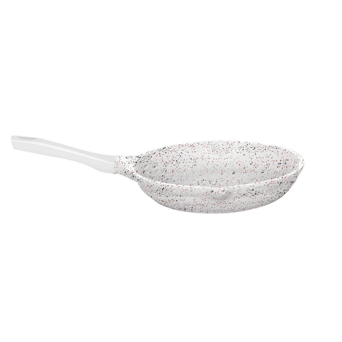 Poêle 28cm effet pierre en fonte d'aluminium pour une cuisson homogène des aliments ! Le revêtement intérieur permet un nettoyage facile. Double bec verseur. Poignée en silicone fixe. Compatible au lave-vaisselle mais nous vous recommandons de le laver à la main pour ne pas diminuer les qualités antiadhérentes de la poêle. Compatible tous feux dont induction.