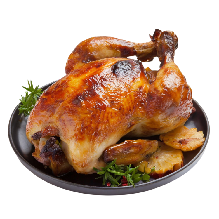 Poulet rôti entier nourri sans OGM et élevé sans antibiotique sans sauce