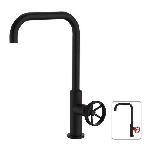 Mitigeur evier de cuisine bec mobile - Noir - 25 mm - Poignee metal decor strie - ROUSSEAU