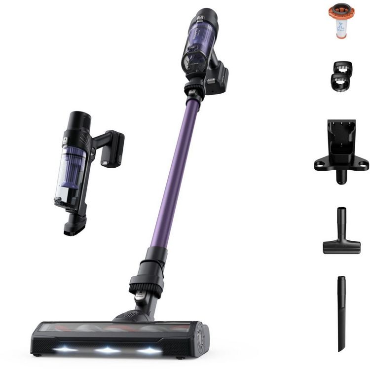 Aspirateur à main | Directement intégré au corps de l'aspirateur balai. Se détache facilement pour une utilisation d'appoint (ex: table, voiture, fauteuil) | |
