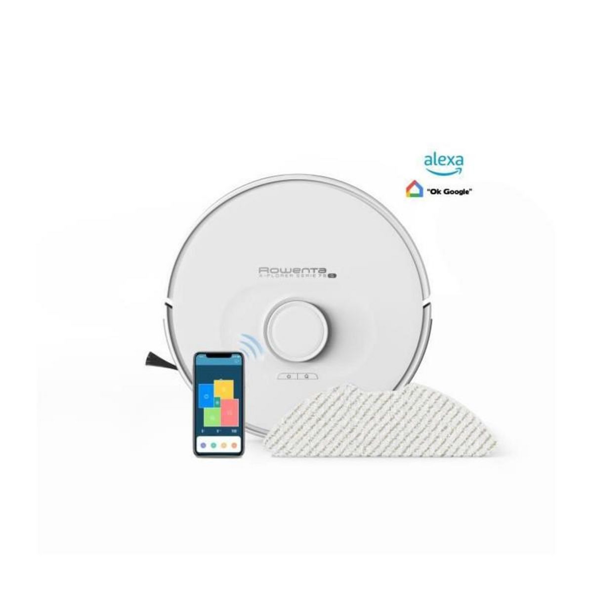 ROWENTA RR8567WH Aspirateur robot laveur, Aspire et lave, Navigation laser ultraprécise, Réglages personnalisés, X-Plorer, Bl
