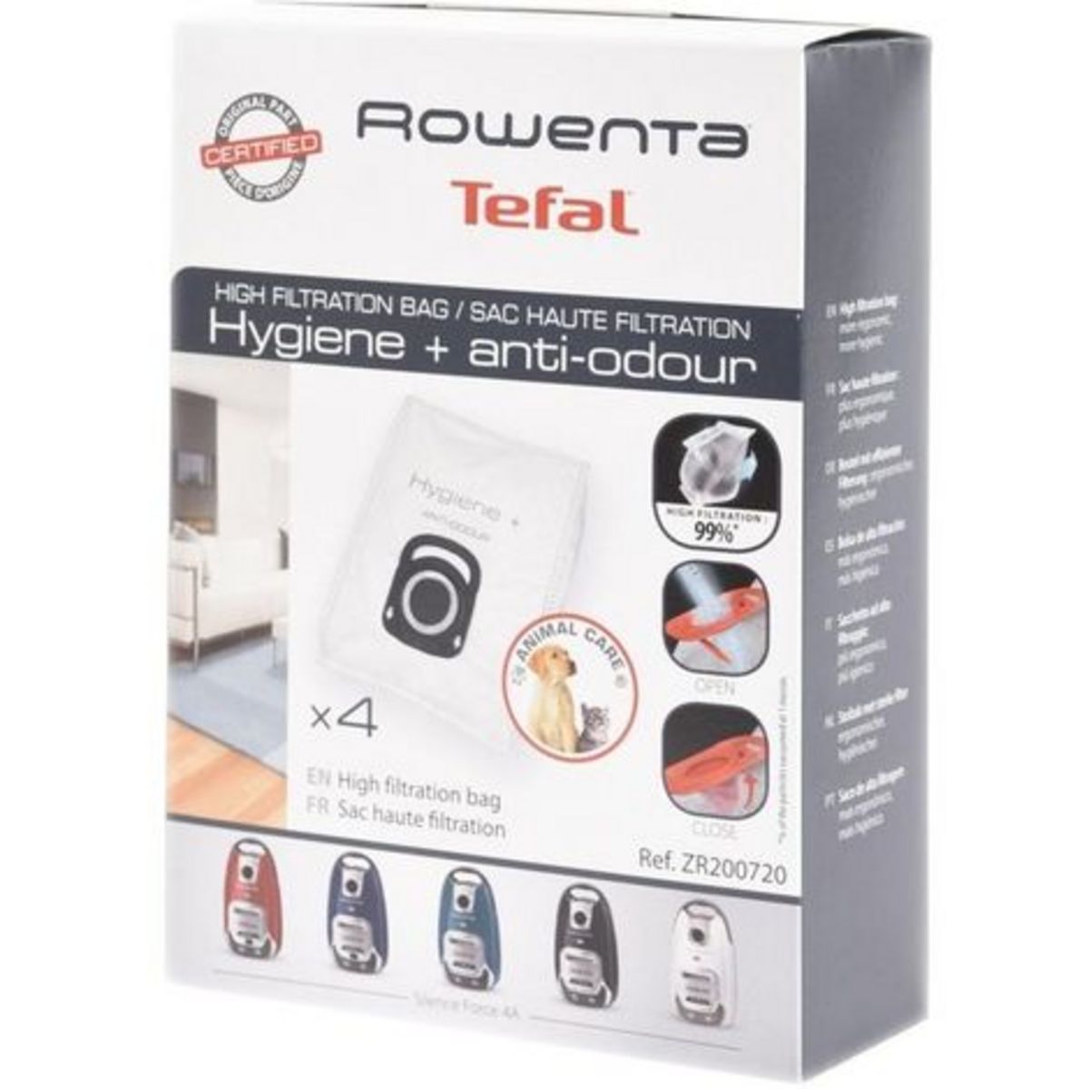 Sacs Aspirateur ZR200720 boite de 4 sacs haute filtration Hygiène+ Anti Odeur pour Silence Force