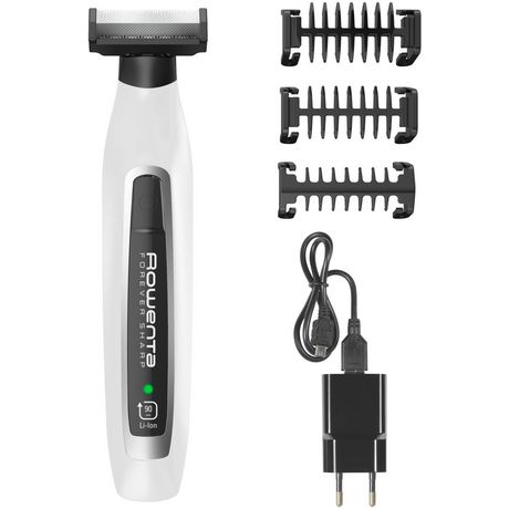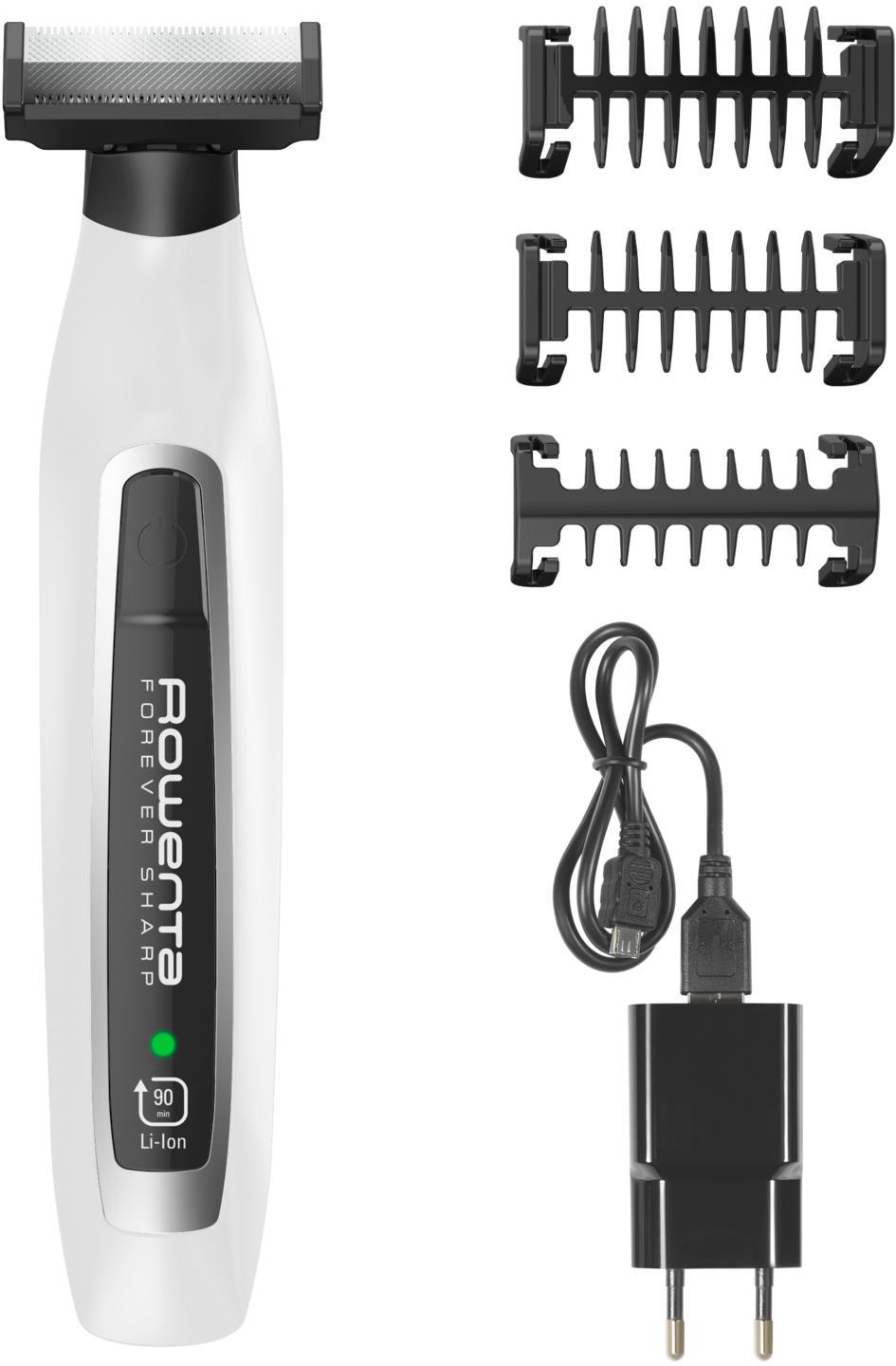 En savoir +Rowenta TN6010F4 Grâce à la tondeuse barbe 3 en 1 rechargeable Forever Sharp Rowenta TN6010F4, gardez votre barbe soignée et impeccable jour après jour. Polyvalente et étanche, cette tondeuse hybride 3 en 1 permet de tailler, styliser et raser votre barbe. Ses lames auto-affûtées en acier inoxydable, qui n'ont pas besoin d'être remplacées, garantissent une efficacité remarquable et une coupe précise en un seul passage. Avec son autonomie incomparable, cette tondeuse électrique offre jusqu'à 1,5 mois d'utilisation sans recharge. C'est la solution idéale pour une barbe parfaite.Nul besoin de remplacer la lame : Lames en acier inoxydable de haute qualité qui n'ont pas besoin d'être remplacées.Des performances d'exception : Sa double lame ultra tranchante permet de tailler, styliser et raser toutes les barbes à la perfection.Efficacité de coupe optimale : La technologie d'auto-affûtage garantit des performances de coupe longue durée et une coupe parfaite en un seul passage.Autonomie exceptionnelle : Profitez de 1,5 mois·de rasage, sans recharger la tondeuse à barbe. Par ailleurs, son indicateur de charge intelligent offre une sérénité absolue.Batterie Lithium-Ion longue durée : La batterie Lithium-Ion offre 90 minutes de puissance constante.Batterie à recharge rapide : Pour encore plus de praticité, 4 minutes de recharge rapide délivrent la puissance suffisante pour une séance complète de rasage. Recharge complète de la tondeuse en 1 h 30 sur la base d'une séance de rasage de 5 minutes.Tondeuse barbe 3 en 1 pour une coupe personnalisée : Une tondeuse unique et très polyvalente qui permet de tailler, styliser et raser votre barbe afin de personnaliser votre style à la perfection. Avec ses trois peignes (1,3,5 mm), elle convient parfaitement à toutes les longueurs de barbe, y compris les barbes longues.Une coupe en toute simplicité : 3 peignes pour tailler précisément toutes les longueurs de barbe : 1 mm pour une barbe courte et précise, 3 mm pour un style barbe de 3 jours et 5 mm pour une barbe épaisse de 10 jours.Styliser avec précision : Lame profilée spécialement conçue pour styliser votre barbe avec précision, même dans les zones difficiles à atteindre. La double lame qui permet une coupe dans les 2 sens apporte une excellente praticité quel que soit le sens d'utilisation.Un rasage parfait : Double lame pour un rasage au plus près. Elle ne rase pas d'aussi près qu'une lame de rasoir traditionnelle, évitant ainsi les irritations cutanées. Sa lame souple et ses bords arrondis garantissent un confort de peau optimal.100% étanche : Technologie Wet & Dry.Tête de rasage amovible pour un nettoyage simplifié et une hygiène irréprochable.Confort d'utilisation optimal : Facile à manier grâce à son design compact et à son utilisation sans fil. Options de chargement ultra pratiques : vous pouvez utiliser la prise secteur altique ou le câble USB, votre tondeuse peut donc vous suivre dans tous vos déplacements.