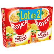 Ingrédients de la soupe déshydratée: amidon de pomme de terre,vermicelles 20% (farine de blé, sel, extrait de curcuma),sirop de glucose,arômes (contient : orge, lait, blé),légumes 12% (carotte, tomate, poireau),sel,viande de poulet 1,7% (antioxydants : E310, E320),persil,curcuma,céleri,protéines de lait. Peut contenir des traces de soja et œuf.