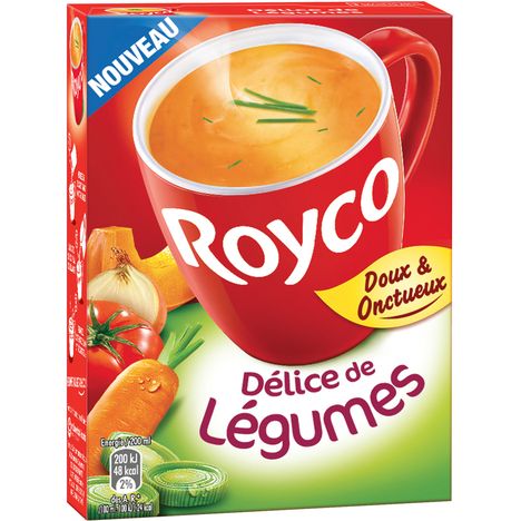 INGREDIENTS DE LA SOUPE DESHYDRATEE: amidon, sirop de glucose, légumes 11,9% (carotte, oignon, potiron, tomate, poireau, betterave), sucre, arômes (contient LAIT, BLE, ORGE), huile de palme, sel, BEURRE en poudre, chlorure de potassium, émulsifiant E472e, LAIT écrémé, stabilisant E340, acidifiant : acide citrique, curcuma, ail, CELERI. Peut contenir des traces de soja.