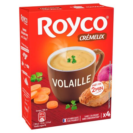 Pour préserver la qualité de nos soupes, sans ajouter de conservateur** ! **Comme toutes les soupes du rayon ambiant. Quel est le secret d'une délicieuse soupe Royco ? Notre savoir-faire français Depuis plus de 60 ans Royco met en œuvre son savoir-faire pour vous proposer des soupes toujours plus gourmandes et réconfortantes. Comment fabriquons-nous nos soupes ? Des légumes sélectionnés avec soin et cueillis à maturité qui sont séchés puis coupés finement en poudre Variez les plaisirs Royco Soupe à l'indienne Royco Extra craquant légumes & croûtons