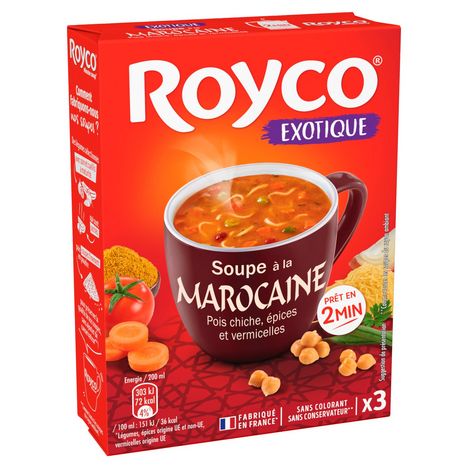 Pour préserver la qualité de nos soupes, sans ajouter de conservateur** ! **Comme toutes les soupes du rayon ambiant. Quel est le secret d'une délicieuse soupe Royco ? Notre savoir-faire français Depuis plus de 60 ans Royco met en œuvre son savoir-faire pour vous proposer des soupes toujours plus gourmandes et réconfortantes. Comment fabriquons-nous nos soupes ? Des légumes sélectionnés avec soin et cueillis à maturité qui sont séchés puis coupés finement en poudre Variez les plaisirs Royco Crémeux champignons Royco Extra craquant légumes & croûtons