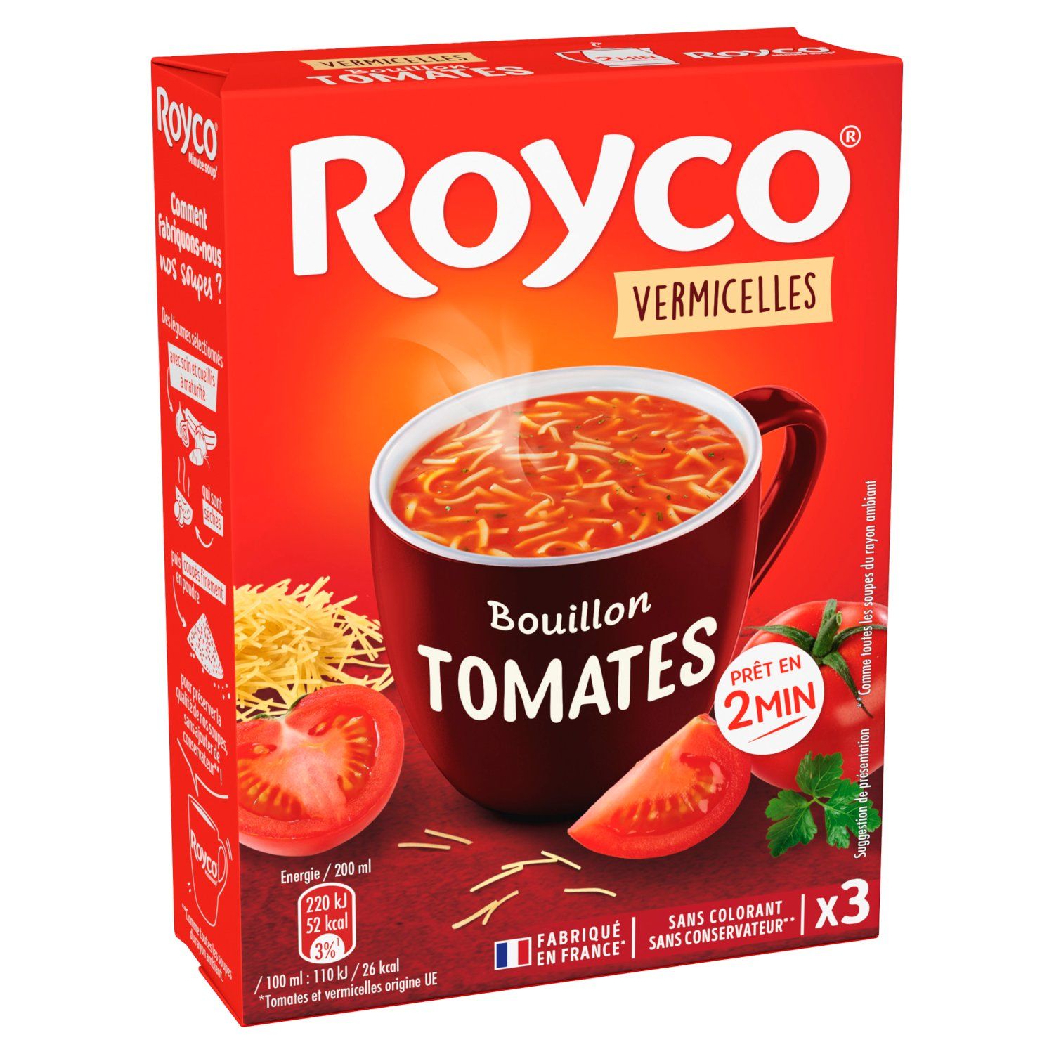 Soupe instantanée aux tomates et vermicelles, aromatisée