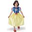La robe effet satinée est de couleur bleue au niveau du buste. Elle possède des manches courtes et bouffantes. Elle est également agrémentée d'un large col blanc. La robe est décorée du portrait de Blanche Neige au niveau du buste. La jupe de la robe est satinée et de couleur jaune.