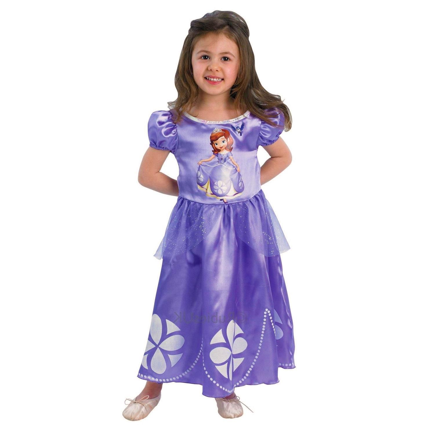 5/6 ans (110 à 116 cm) - Une jolie panoplie pour les petites filles qui rêvent de contes de fées, de châteaux étincelants et de bals somptueux à la cour d'Enchancia.Robe effet satin imprimée à l'effigie de Sofia, petit surjupon en tulle pailleté, manches courts bouffantes.Pour les petites filles à p