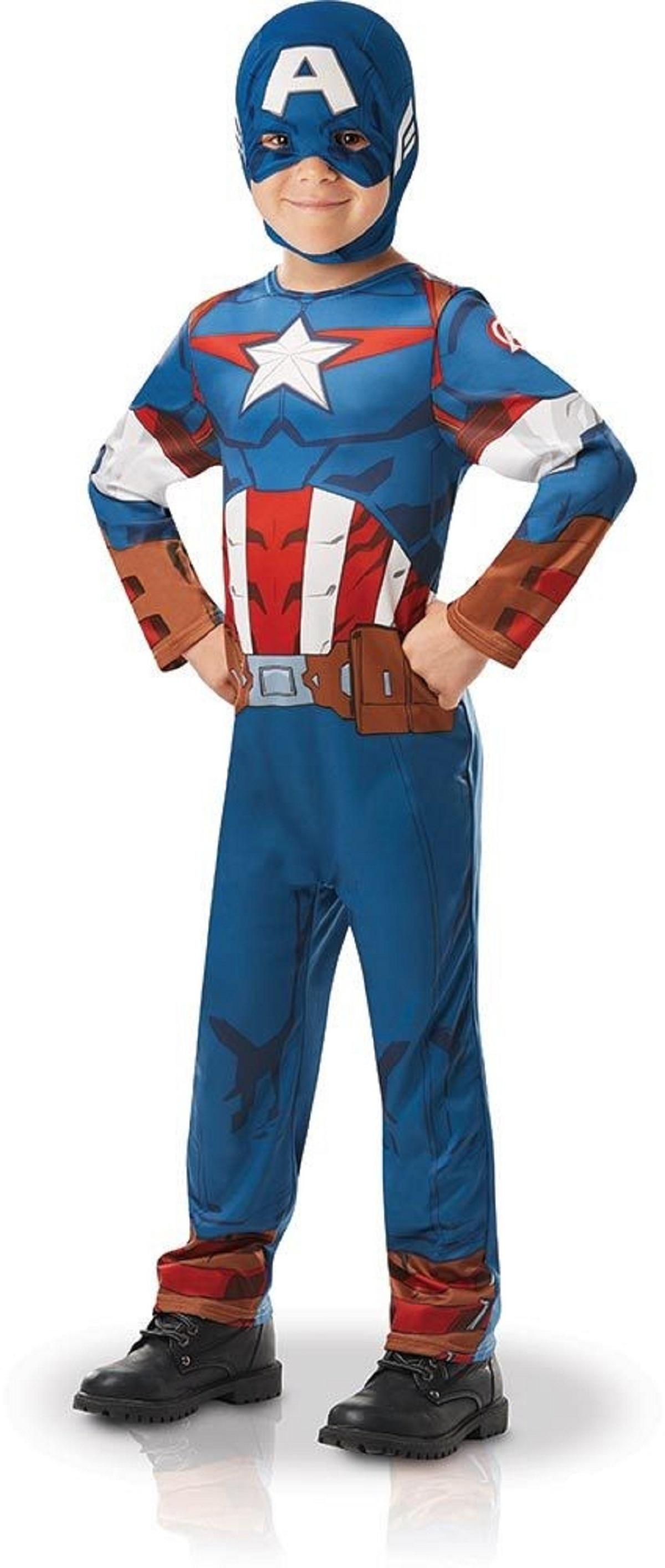 Tu rêves de te mettre dans la peau de Captain America ? Enfile la combinaison taille M 5/6 ans et le masque pour devenir un super héros vivre de grandes aventures.