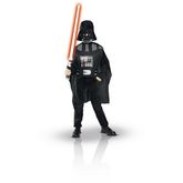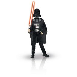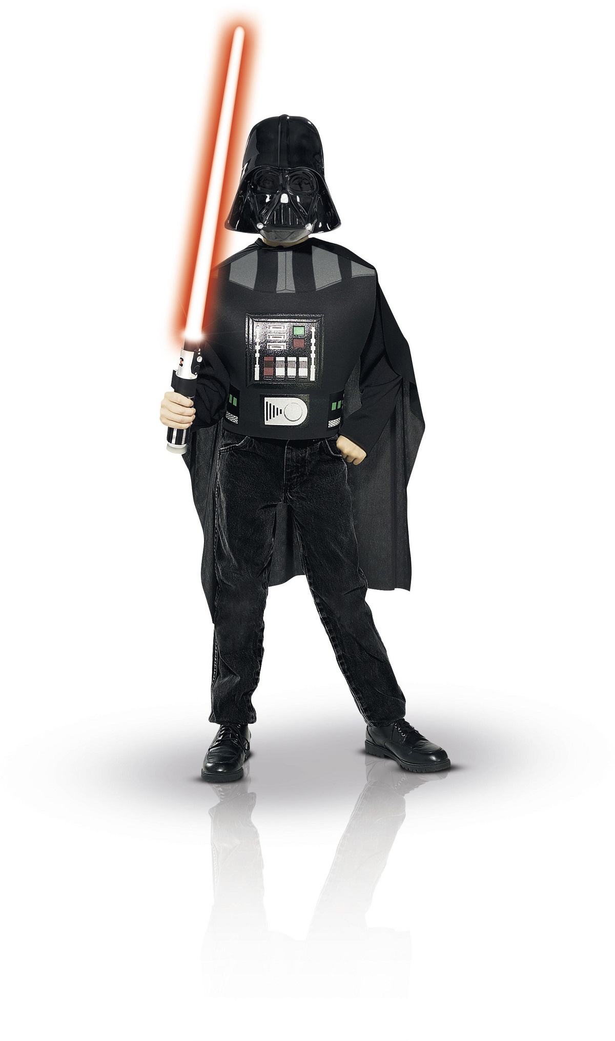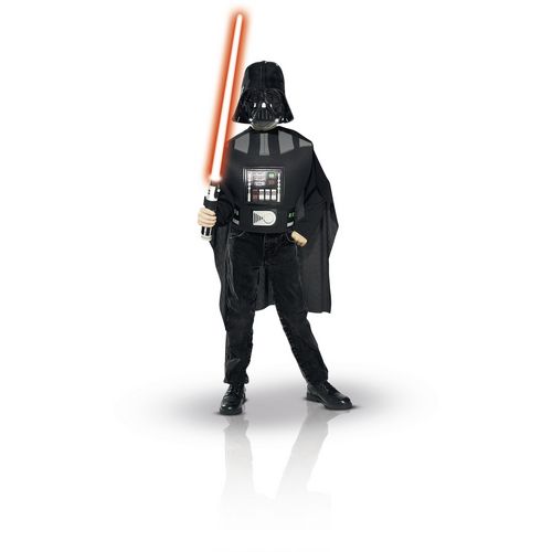 Déguisement complet du personnage Dark Vador pour que votre enfant se transforme en personnage de la saga Star Wars. Déguisement Star Wars composé d'une cape, d'une ceinture, d'un masque et d'un sabre lumineux. Idéal pour un enfant de 4-5 ans