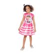 Une robe en tissu satiné rose avec impression Gabby et Pandy Paws sur le buste. Un serre-tête blanc avec oreilles de chat. *Chaussures non incluses