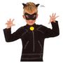 Top + loup Miraculous Chat Noir comprenant un top à manches longues, imprimé noir avec une dédaille imprimée et un loup en mousse assorti.