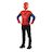 Un top en jersey rouge et bleu imprimé avec logo araignée, ceinture élastique à l’arrière et système de fermeture velcro au niveau du col.Une cagoule en tissu jersey assortie à l’effigie de Spider-Man avec attache velcro à l’arrière et ouvertures pour les yeux.