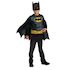 Un top à manches longues en jersey imprimé avec logo, muscles et ceinture sur le top. Une cape en tissu noire avec attaches velcro sur les épaules. Un masque en PVC noir à l’effigie du super-héros Batman avec attache élastique à l’arrière.