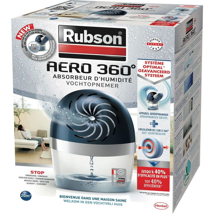 Rubson 2011391 Absorbeur d'humidité Rubson 2011391. Le nouveau système AERO 360° permet une circulation de l'air à 360° autour et au travers de la recharge pour une lutte contre l'humidité encore plus efficace. Le nouvel absorbeur Rubson, issu de la nouvelle technologie AERO 360°, est équipé d'un sy