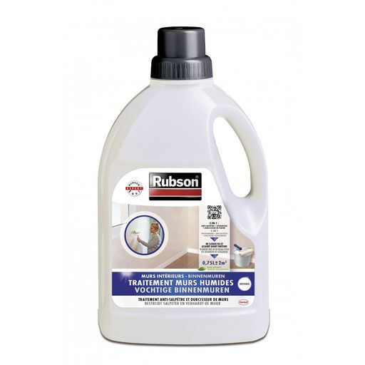 Le Traitement Murs Humides Stop Salpêtre Anti-humidité + Durcisseurs Murs est un hydrofuge combiné à une résine acrylique (blanc laiteux invisible au séchage).