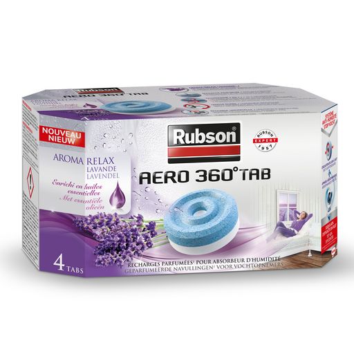 Les recharges Lavande Relax conçues pour l’appareil RUBSON AERO 360° bénéficient de la technologie exclusive AERO 360° qui leur confère une efficacité renforcée par rapport à une recharge classique. Grâce à leur surface de contact avec l’air plus importante, les recharges luttent de manière plus efficace et plus rapide contre l’humidité et les mauvaises odeurs. Enfin, elles diffusent tout au long de leur vie un agréable parfum* de lavande enrichi en huiles essentielles, permettant de créer une atmosphère apaisante dans votre maison.