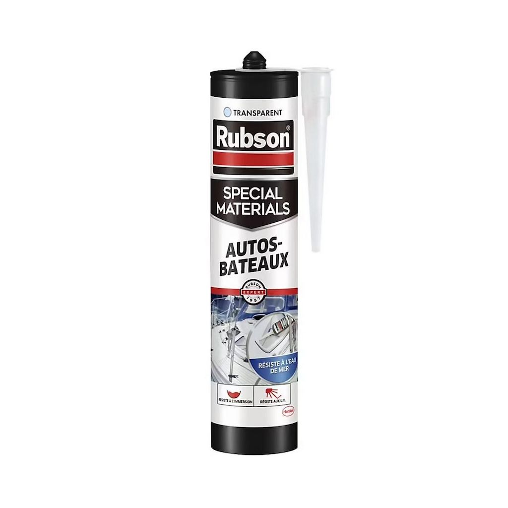Rubson 2001159 Mastic colle autos-bateaux 2001159 de Rubson.Le mastic autos et bateaux de 280 mL de coloris transparent de la marque RUBSON possède une formule en élastomère silicone mono composant de type acétique. Parfait pour l'étanchéité, le collage, la réparation et l'assemblage de la plupart d
