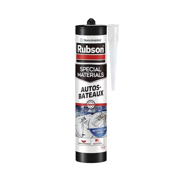 Le mastic autos et bateaux de 280 mL de coloris transparent de la marque RUBSON possède une formule en élastomère silicone mono composant de type acétique. Parfait pour l'étanchéité, le collage, la réparation et l'assemblage de la plupart des matériaux utilisés pour votre voiture, caravane, moto, bateau (métaux, verre, caoutchouc, bois, ..). Reste élastique, étanche et inaltérable. Excellente résistance aux UV et aux variations de température. Insensible à l'eau de mer et aux sels de déneigement.