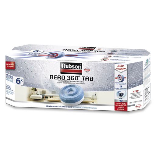 Rubson 1619506 Les nouvelles recharges AERO 360 (2en1) 1619506 de Rubson conviennent pour tous les appareils Rubson : Basic, 20 m et 40 m. Leur technologie exclusive AERO 360 possède une efficacité renforcée par rapport à une recharge tabs. - Type de produit : Recharge Absorbeur.Utilité : Absorbeur