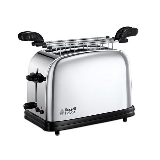 Découvrez le grille-pain Russell Hobbs Chester 23310-57, un appareil élégant en inox noir et argent, conçu pour griller proprement deux tranches de pain. Il dispose d'une fonction de brunissage réglable, de fentes extra larges pour préparer des sandwichs savoureux, ainsi que de commandes intuitives.