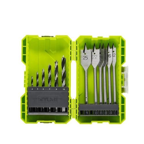 Coffret antichocs empilable RYOBI 12 accessoires de perçage bois RAK12SWD