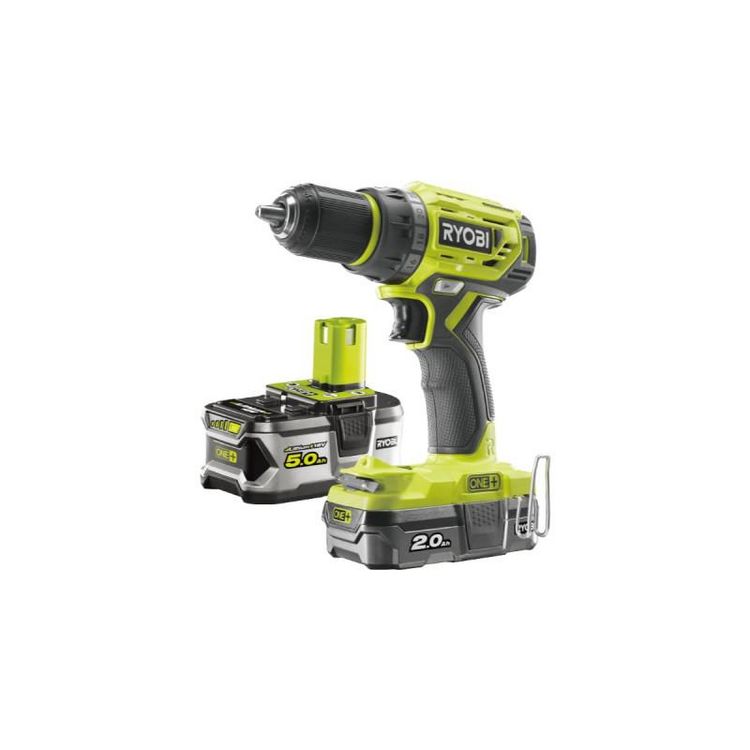 Perceuse-visseuse Brushless RYOBI 18V One+ - 1 batterie 2.0 Ah - 1 batterie 5,0 Ah - R18DD7-252S