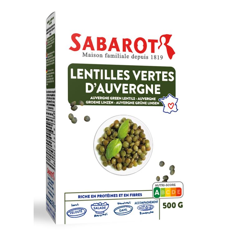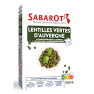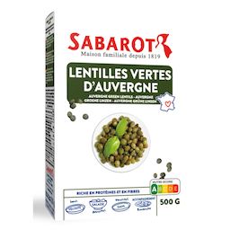 Issues du terroir Auvergnat et riches en fibres, les lentilles vertes d'Auvergne Sabarot, certifiées "Ma région, ses terroirs" sont parfaites cuisinées chaudes ou froides. Ces lentilles vertes Françaises s'adapteront à tous vos plats : salades, veloutés, accompagnements, plats mijotés et même desserts.