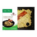 Ingrédients : Cochon de lait (35%), frites (26%) (pommes de terre, huile de tournesol, sel), OEUF, huile d'olive, oignon, persil, saindoux (saindoux, antioxydant E320), ail, sel, conservateur (E262ii) et antioxydant (E300).