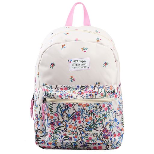 Sac à dos 1 compartiment blanc à fleurs