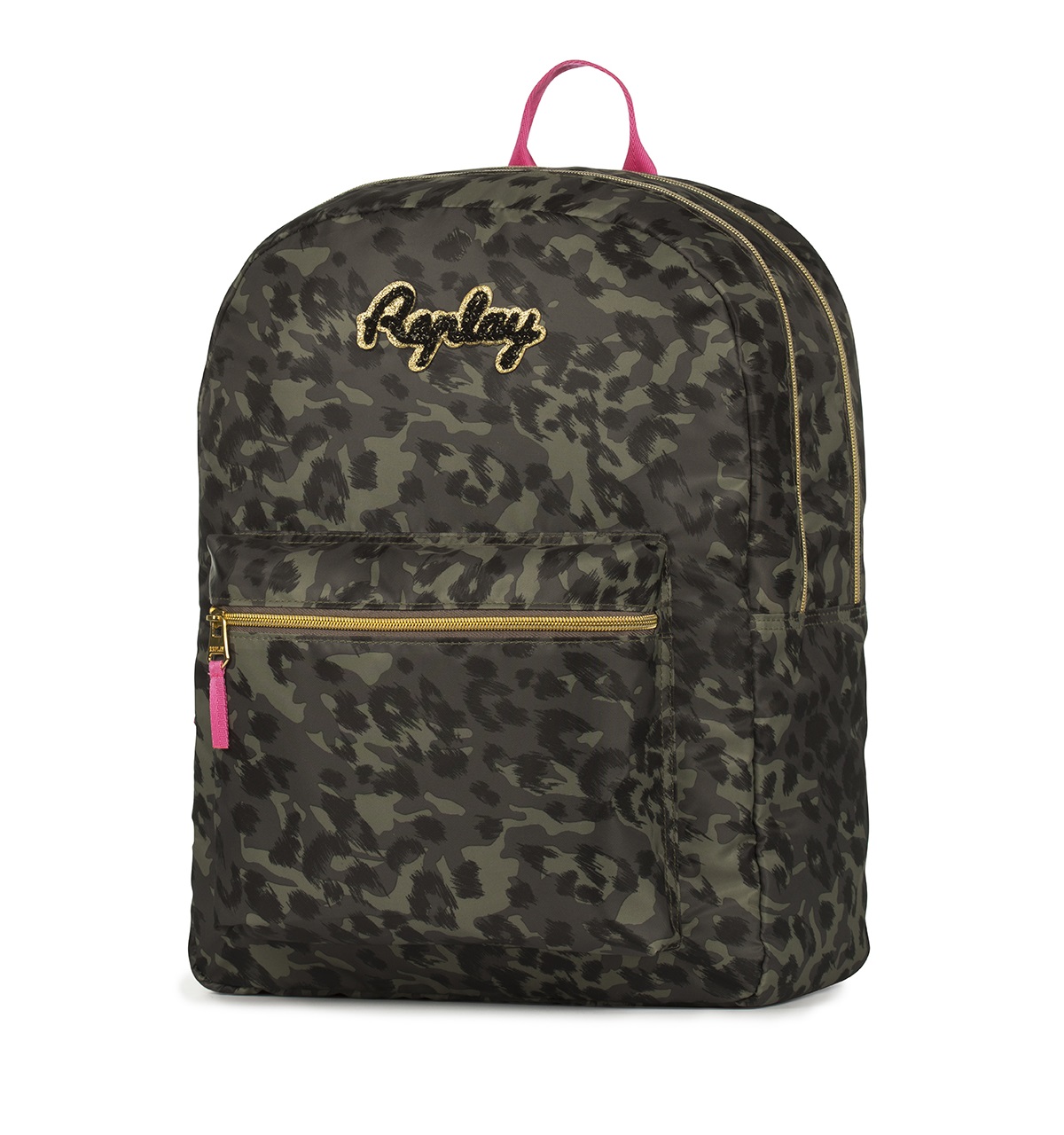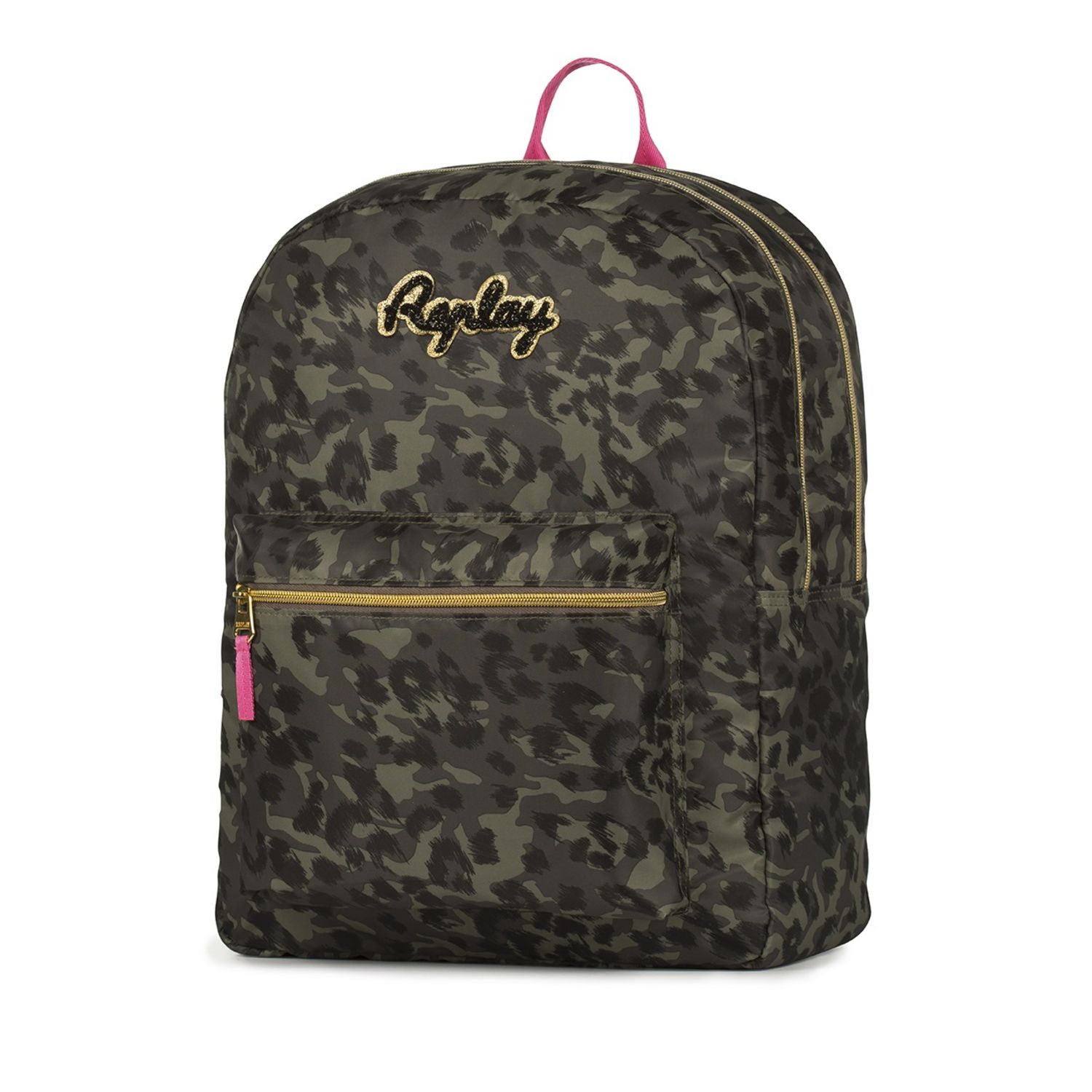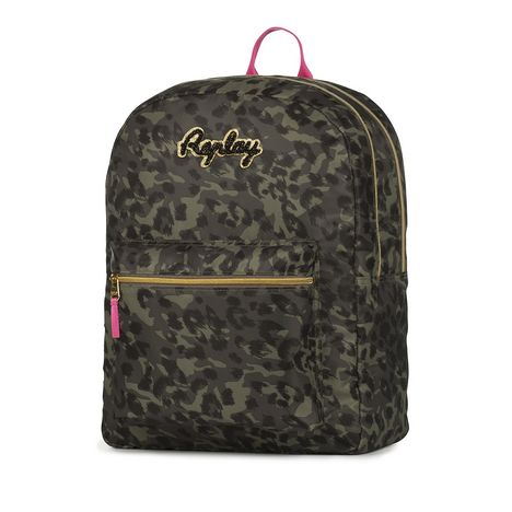 Sac à dos 2 compartiments fille Replay kaki imprimé léopard