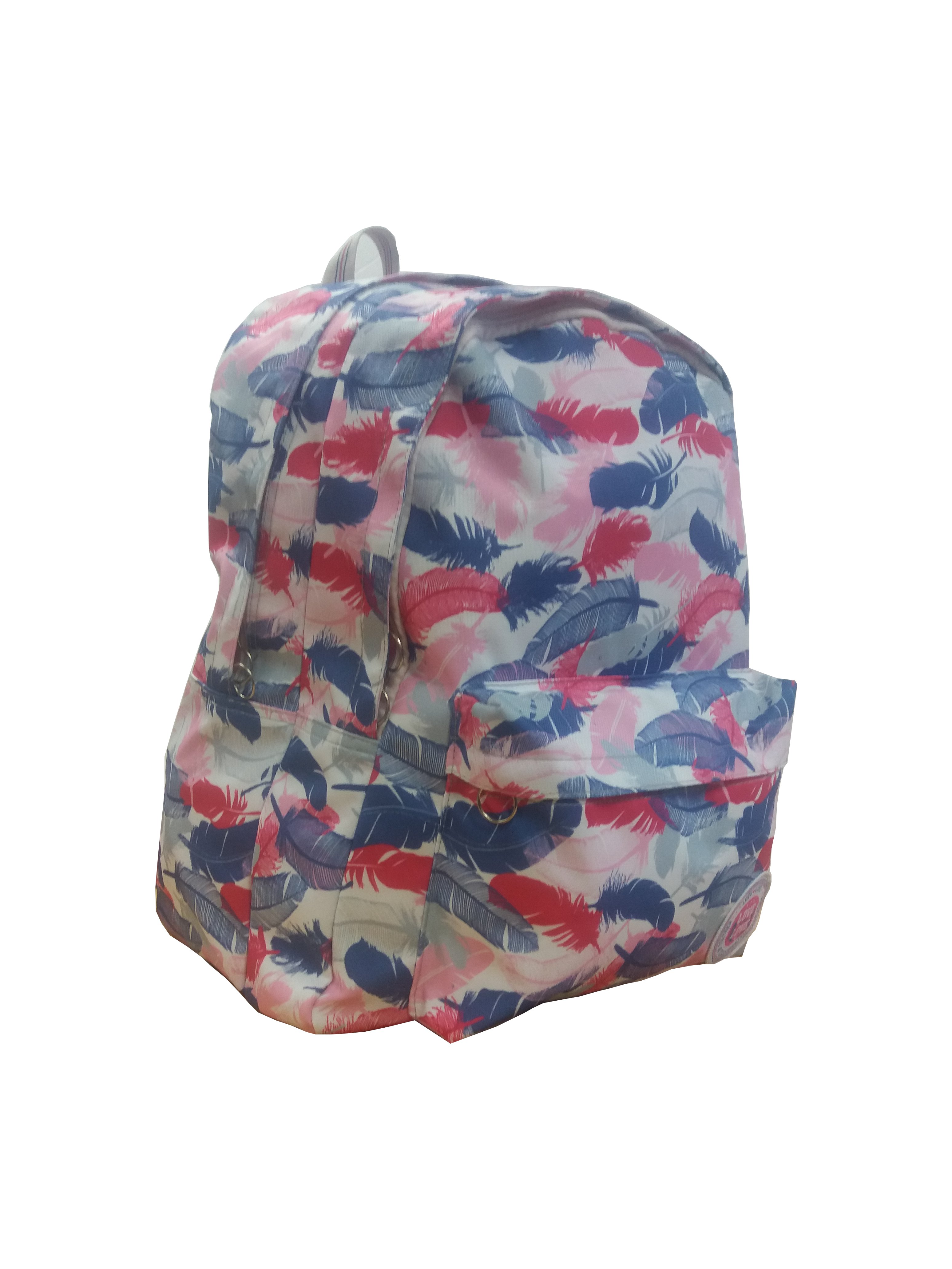 Sac à dos 2 compartiments + poche avant fille Love Love rose motif plumes