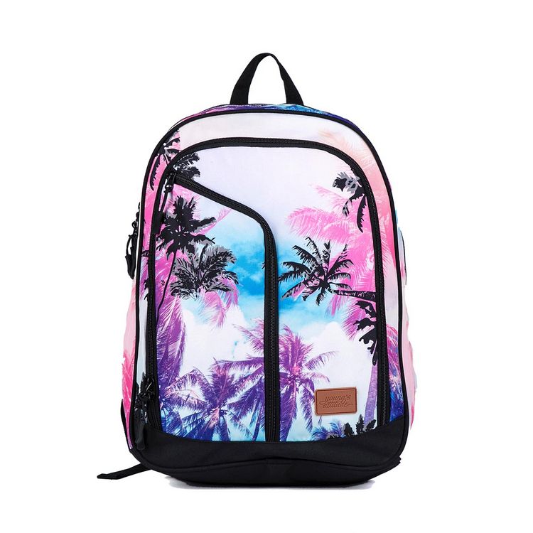 Sac à dos 2 compartiments + poches avant Blanc, rose et bleu imprimé palmiers