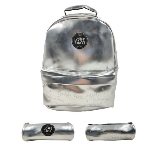 Sac à dos 2 compartiments + trousse LOVE LOVE - Argent