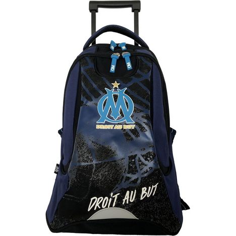 Sac à dos à roulettes bleu et noir OM