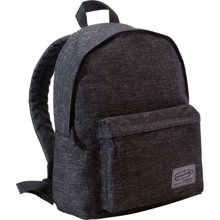 "Sac à dos 30x39x14 cm Compartiment principal avec doublure et fermeture éclair Poche avant avec fermeture éclair Bretelles réglables et dos molletonné Capacité 18 litres À base de plastique PET recyclé* = 20 bouteilles *Fabriqué à partir de 20 bouteilles de 550ml – 80% du poids total de la