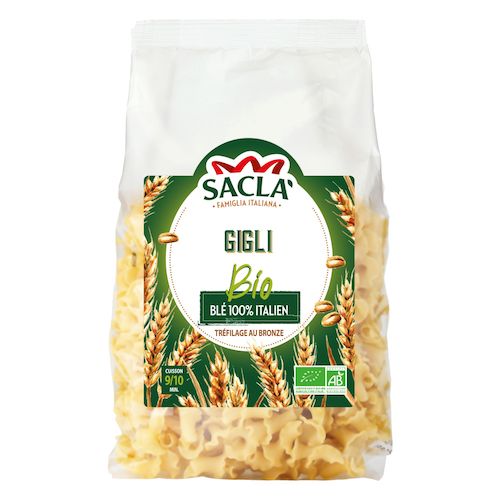 Semoule de BLÉ dur*, Eau. CONTIENT DU GLUTEN. *Issu de l'agriculture biologique. Peut contenir du SOJA et de la MOUTARDE