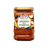 Purée de tomates, Aubergines grillées 27%, Huile de tournesol, Fromage Parmigiano Reggiano AOP 7% (LAIT), Basilic, Fructose, Vin blanc, Sel marin, Oignon, Ail, Poivre noir moulu, Arômes naturels, Correcteurs d'acidité: Acide lactique, Acide citrique.