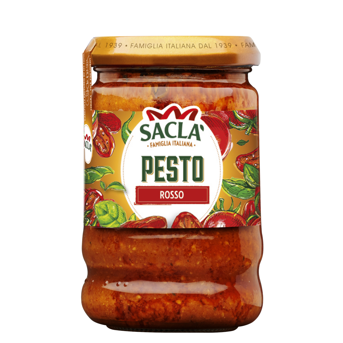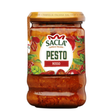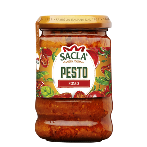 Purée de tomates, Huile de tournesol, Basilic 10%, Tomates séchées 4% (ANHYDRIDE SULFUREUX), Poivrons (ANHYDRIDE SULFUREUX), Noix de cajou (FRUITS A COQUE), Fromage Grana Padano AOP (LAIT, ŒUF), Fromage Pecorino Romano AOP (LAIT de brebis), Sel marin, Huile d'olive vierge extra, Pignons, Carottes, Ail, Correcteur d'acidité: Acide lactique.