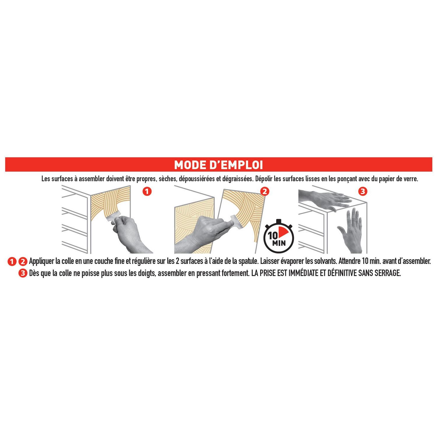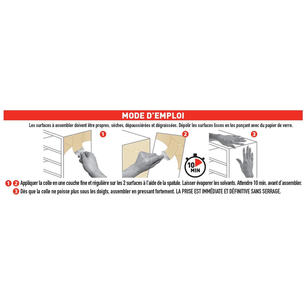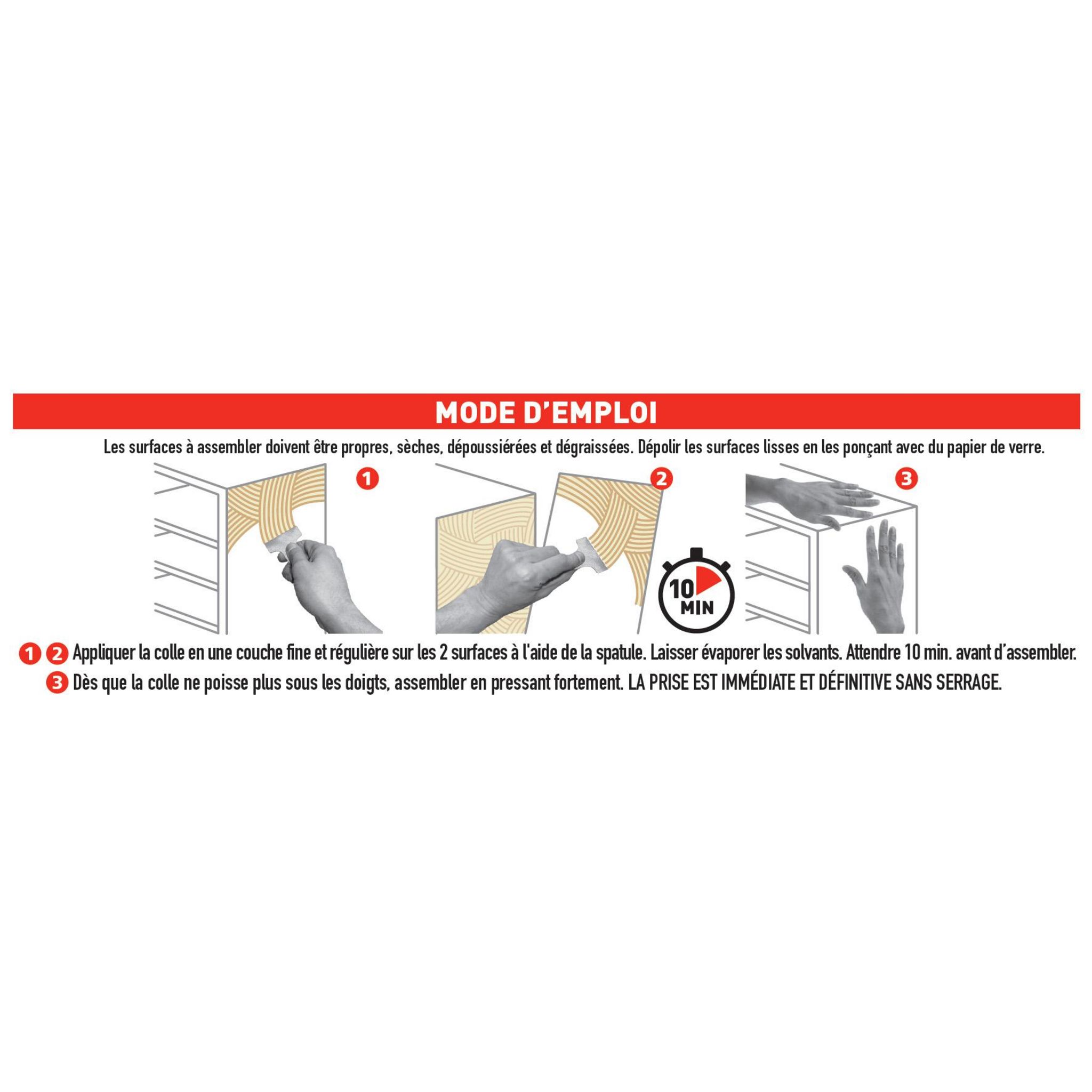 Prise immédiate.Collage puissant. Tous matériaux. Idéal pour les surfaces verticales.Nom du produit: Colle néoprène gelIndication du geste de tri (triman): Non