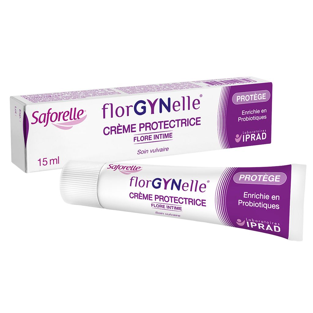 Florgynelle Crème protectrice, 1ère crème intime enrichie en probiotique, testée sous contrôle gynécologique, protège, respecte l'équilibre de la flore vulvaire, limite l'apparition d'inconfort intime