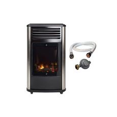 Chauffage à gaz 3.4 KW mobile Noir Effet feu + Tuyau gaz + Détendeur butane Manhattan SAHARA