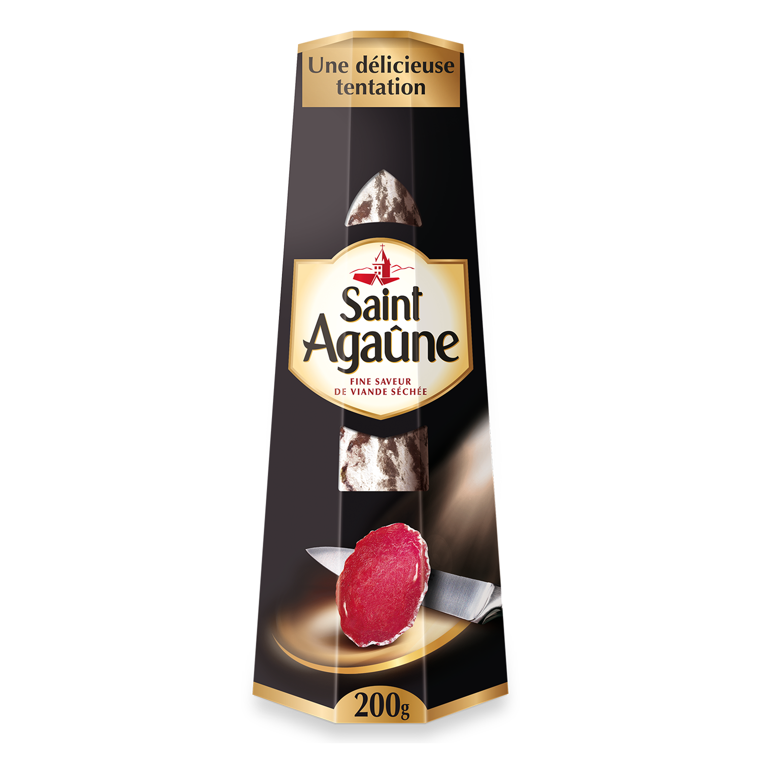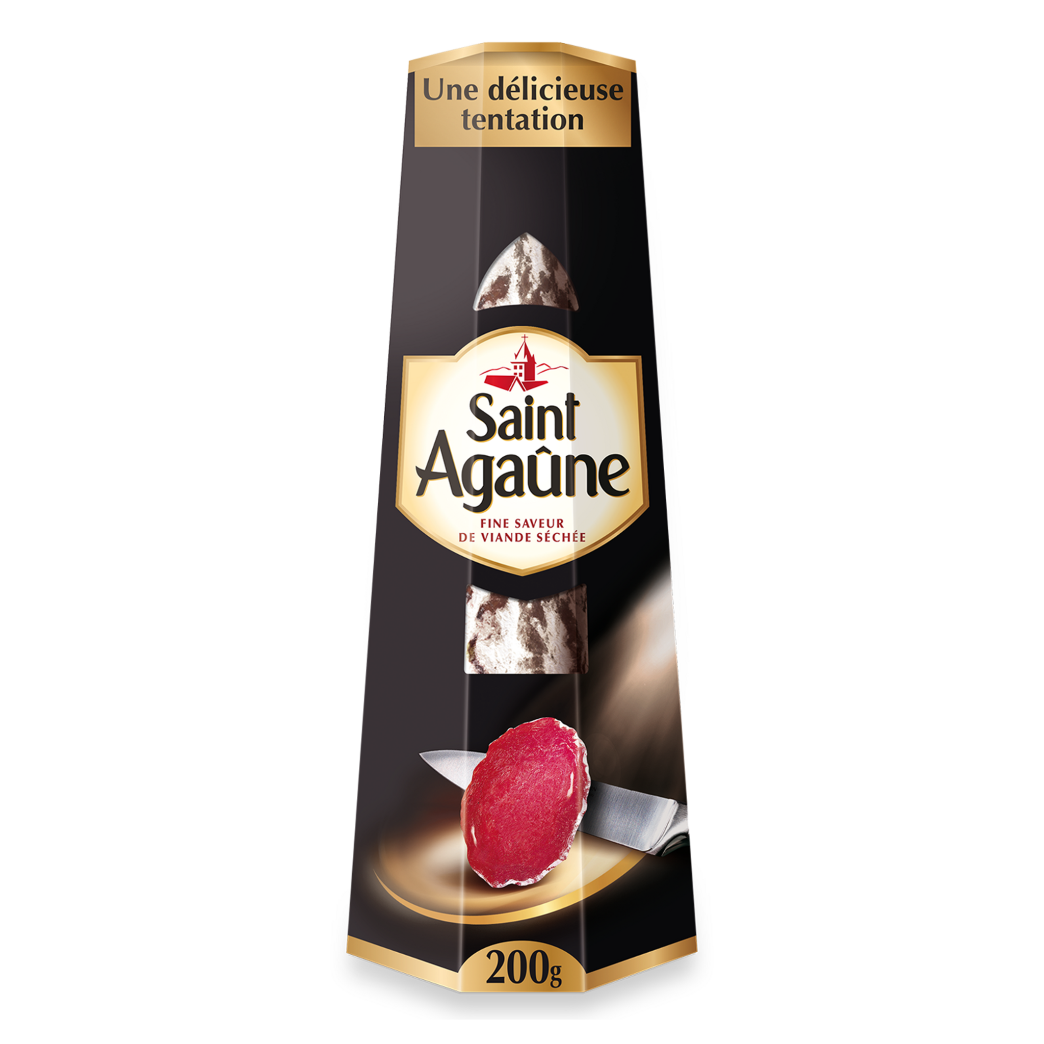 Spécialité de viande séchée Saint Agaûne, un saucisson, non, une divine tentation… Découvrez notre recette tendre et savoureuse. Un goût délicat de viande séchée et 2,5 fois moins de matière grasse qu’un saucisson classique, pour succomber à la tentation…