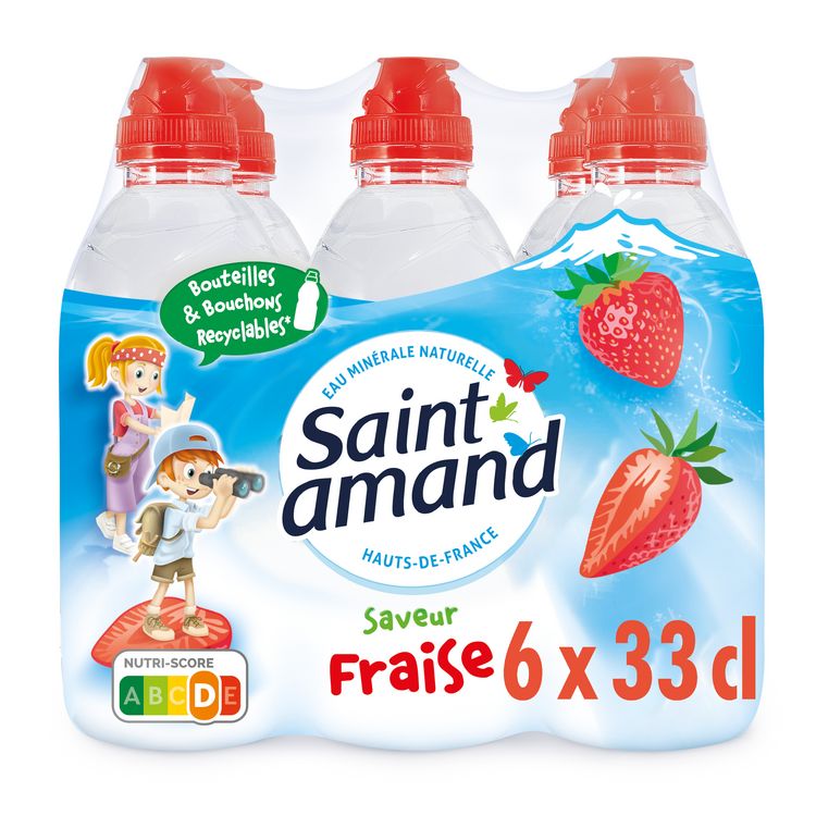 Saint Amand vous propose une eau minérale aromatisée à la fraise.
