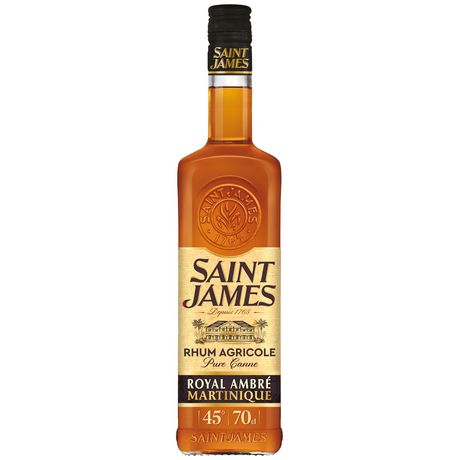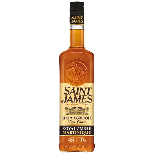 Elaboré à partir de pur jus de canne, et vieilli en foudre de chêne entre 18 et 24 mois le Rhum Agricole A.O.C. Martinique Royal Ambré SAINT JAMES se distingue par des arômes boisés et une force aromatique unique. Il est idéal en cocktails.