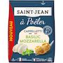 Cappelletti à poêler MOZZARELLA basilic 76% (Pâte: Semoule de BLE dur de qualité supérieure 37%, eau, OEUFS issus de poules élevées en plein air 5.2%. Farce: chapelure (BLE), MOZARELLA 5.3%, FROMAGE frais, basilic 3.6%, RICOTTA, eau, contient huile de tournesol et/ou huile de colza, sel, fibre de blé, ail déshydraté, poivre, arome naturel.), eau, huile de tournesol. Pourcentages exprimés sur l'ensemble du produit