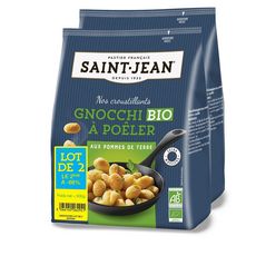 Produit à consommer après cuisson. Dans une poêle antiadhésive faire fondre une noisette de beurre puis versez les gnocchis. Faites dorer à feu vif pendant 3 minutes en remuant régulièrement. Couvrir ensuite et laisser cuire 2 minutes à feu doux sans oublier de remuer de temps en temps. Servez immédiatement. Si vous les aimez plus moelleux, vous pouvez les faire cuire 2 minutes à l'eau frémissante salée.