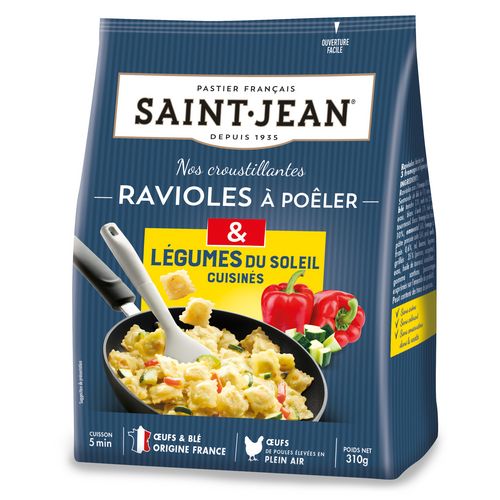 Produit à consommer après cuisson. ASTUCE: avant d'ouvrir votre sachet, malaxez le délicatement pour détacher les ravioles entre elles! Faîtes préchauffer une grande poêle à feu vif, sans ajouter de matière grasse puis versez le contenu du sachet. Faîtes dorer vos ravioles à feu vif pendant au moins 5 MINUTES, en remuant délicatement de temps en temps. Quand vos ravioles sont cuites à c?ur, servez immédiatement. Régalez-vous!